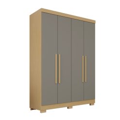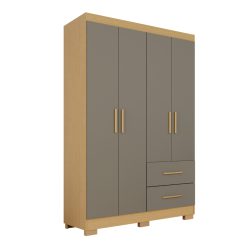 Guarda-roupa solteiro 4 portas e 2 gavetas Com Espelho Estrela Premium – Jequitibá/granizo – Sallêto