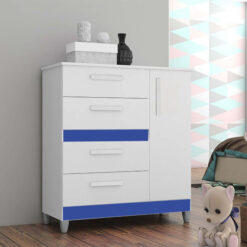 Cômoda Sapateira com 4 Gavetas Josy Flex – Branco/Rosa/Azul – Bors