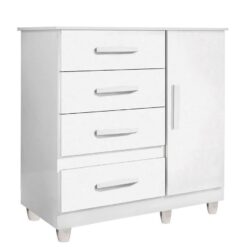 Cômoda com 4 Gavetas 1 Porta Moscou – Branco – Poquema