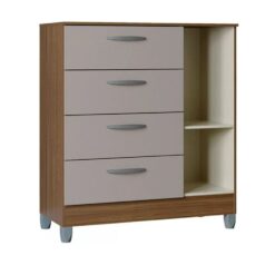 Cômoda com 4 Gavetas 1 Porta Moscou – Castanho/Off White – Poquema