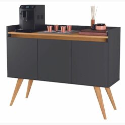 Aparador Buffet Retrô com 3 Portas Gold Luxo – Preto/Mel