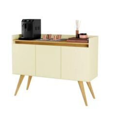 Aparador Buffet Retrô com 3 Portas Gold Luxo – Mel/Perola