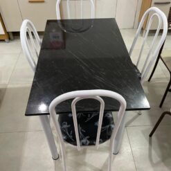 Conjunto de Mesa Tubular Com 4 Cadeiras Ubatuba 60 x 100cm Tampo Pedra Indiano preto – TTX