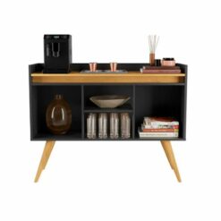 Aparador Buffet Retrô com 3 Portas Gold Luxo – Preto/Mel – Primus