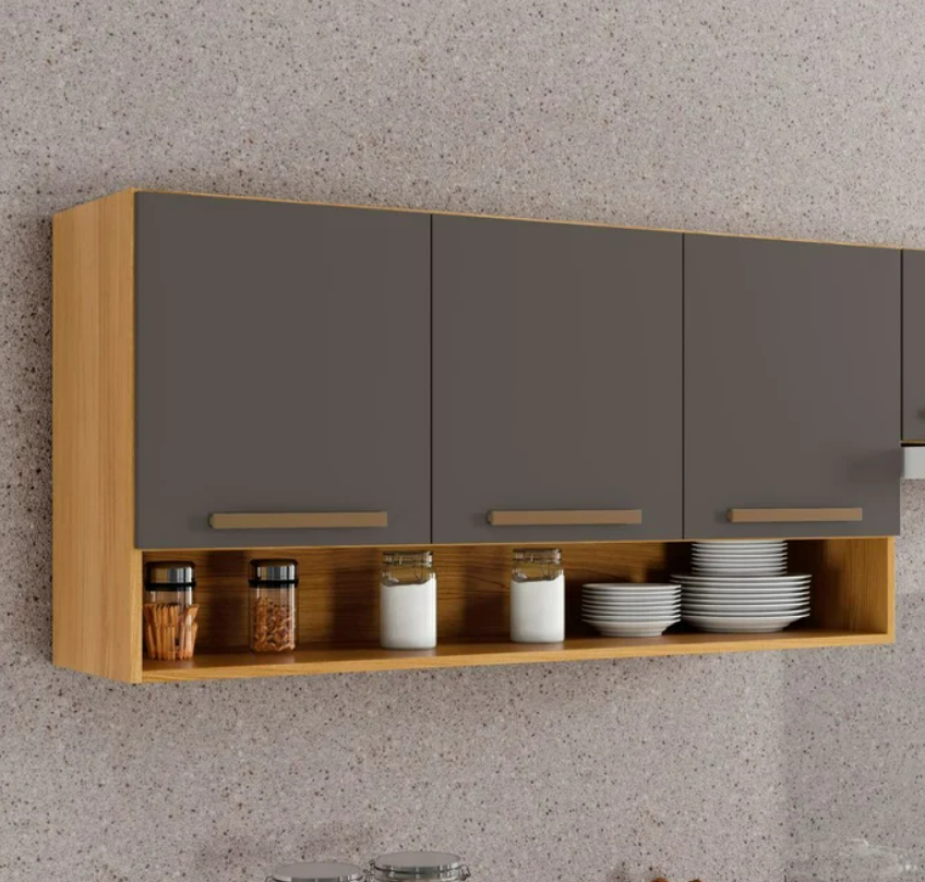 Armário Aéreo 3 portas New Cristal – Cinamomo/Grafite