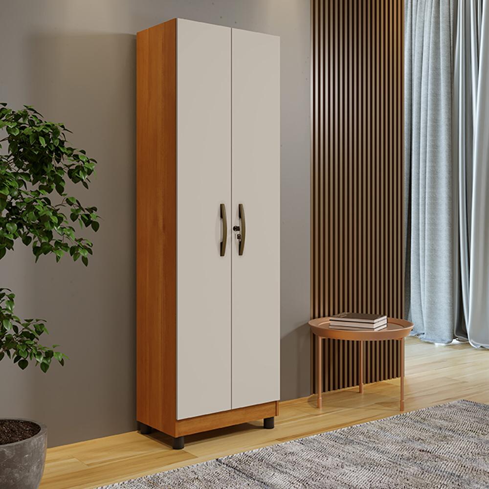 Armário Multiuso 4 Prateleiras e 2 Portas com Chave Sparta – Cinamomo/Off White