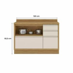 Produzido para facilitar seu dia a dia na cozinha, ele é ótimo para a organização de panelas, talheres, pano te pratos e demais objetos, pois conta com 4 gavetas sendo 2 gavetões com um amplo espaço interno para você acomodar melhor seus utensílios , 1 porta para guardar objetos maiores, vem com rodapés e 4 pés reguláveis . Além de ser um belo balcão, sua estrutura é feita de mdf com uma ótima resistência e qualidade.
