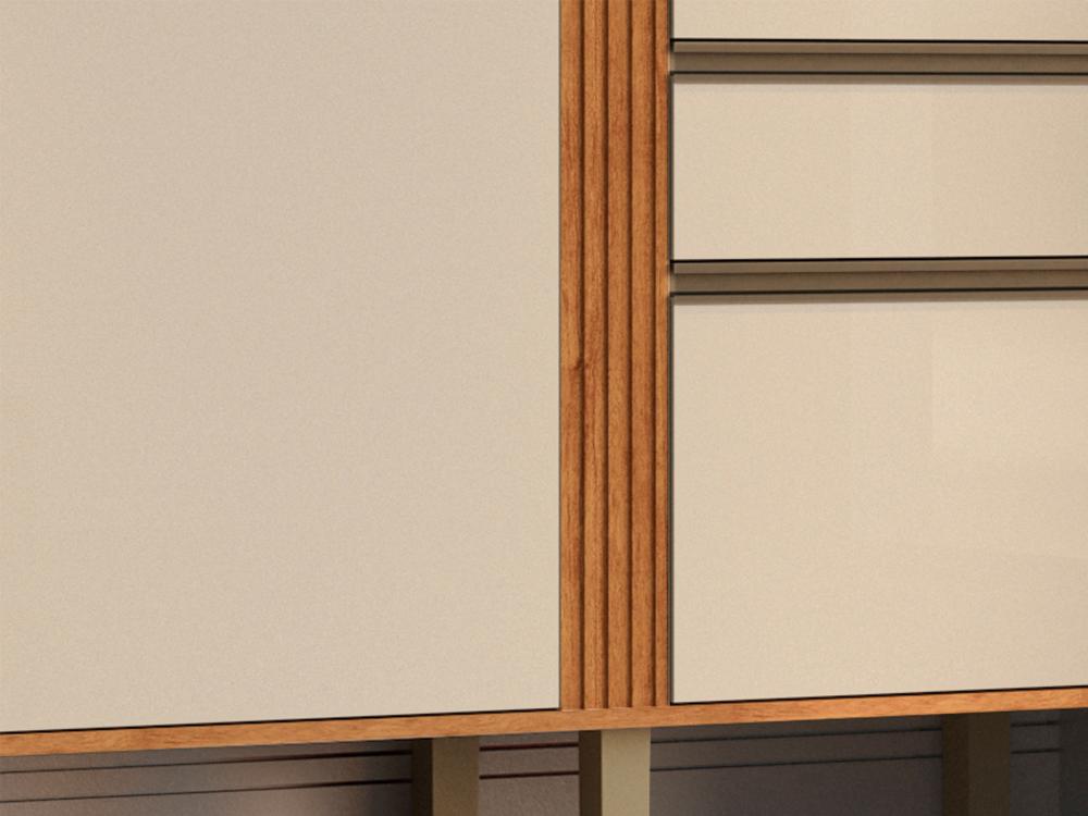Feito em MDP, ele conta com 2 portas, 2 gavetas com corrediças telescópicas, fornecendo maior aproveitamento do espaço dos armários e possibilitam um deslizamento suave, firme e silencioso. Além disso, esse balcão possui um lindo detalhe ripado, e conta com pés com regulagem de altura que possibilita ajustes na regulagem do móvel com o piso.