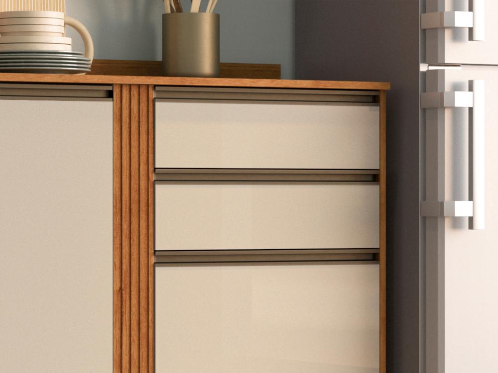 O balcão Peróla conta com amplo espaço interno para você guardar tanto utensílios como também alimentos, eletroportáteis e assim deixar a sua cozinha sempre organizada e bonita. É um produto de excelente qualidade, perfeito para deixar a sua cozinha sofisticada.