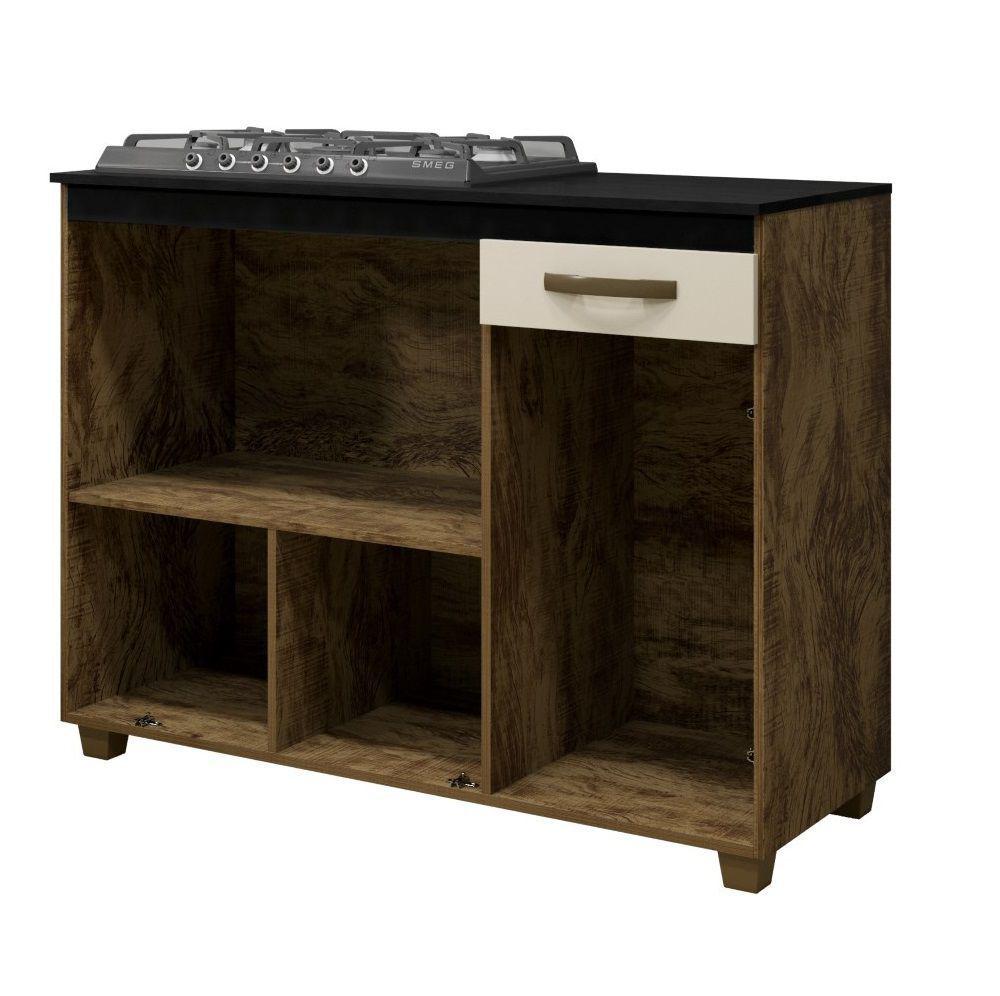 Balcão de Cozinha para Cooktop 5 Bocas Kairos – Ipê / Off White