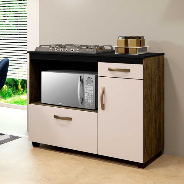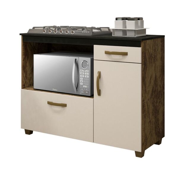 Beleza e charme para sua cozinha com o Balcão Kairos, ideal para cooktop de 5 bocas. Com seu estilo moderno e sofisticado ele vem com recorte no tampo com 63,5Cm x 35Cm, pés reguláveis, 1 gaveta para você guardar talheres, panos de prato e muito mais, 5 prateleiras internas, 2 portas sendo uma basculante e uma articulada.