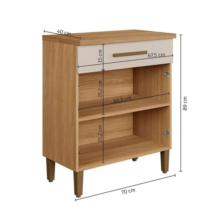 Balcão 2 portas 1 gaveta Cristal – Cinamomo/Off White