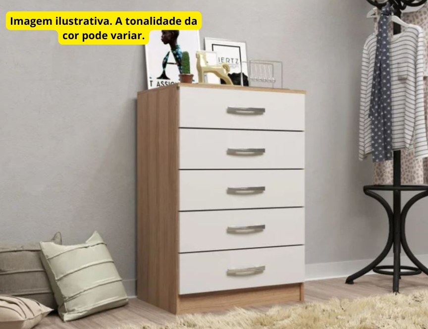 Cômoda com 5 Gavetas CP051 – Branco/Cinamomo