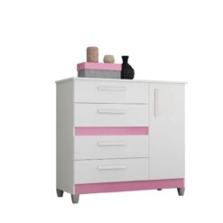 Cômoda Sapateira Josy Com 4 Gavetas – Branco/Rosa/Azul