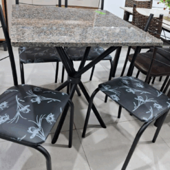 Conjunto de Mesa Tubular com 4 Cadeiras Rio – Pedra Quadrada 75 x 75 Granito Ocre – TTX