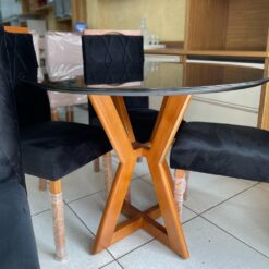 Com sua base na cor mel, a Mesa de Jantar Ibiza confere um toque adicional de sofisticação ao seu design, harmonizando-se perfeitamente com o tampo redondo. Essa fusão entre modernidade e rusticidade cria uma atmosfera acolhedora e refinada, intensificada pela presença das 4 Cadeiras. Além de oferecerem conforto, as cadeiras incorporam um estilo único, transformando o ambiente da sua sala de jantar.