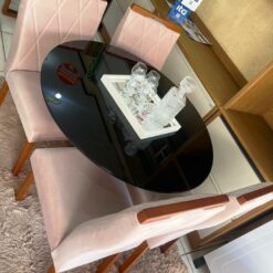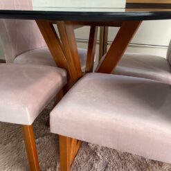 Seja o primeiro a avaliar “Conjunto Mesa de Jantar Redonda Ibiza 100 x 100 Com 4 Cadeiras Lisboa Veludo Rose – Tampo Preto – Art”