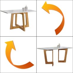O Conjunto de Mesa de Jantar Retangular Dubai é perfeito para quem busca elegância e funcionalidade.Com tampo de 120 x 80 cm, acomoda até 4 pessoas com conforto. Seu design moderno valoriza o ambiente, e a base possui montagem flex, permitindo ajustar a posição conforme o espaço.