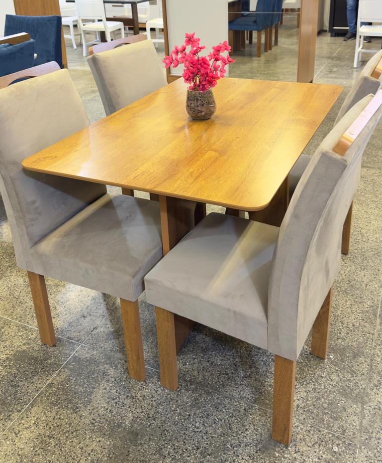 Conjunto Mesa de Jantar Retangular Salinas Londres 120 x 80 Com 4 Cadeiras Bege – Cinamomo