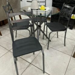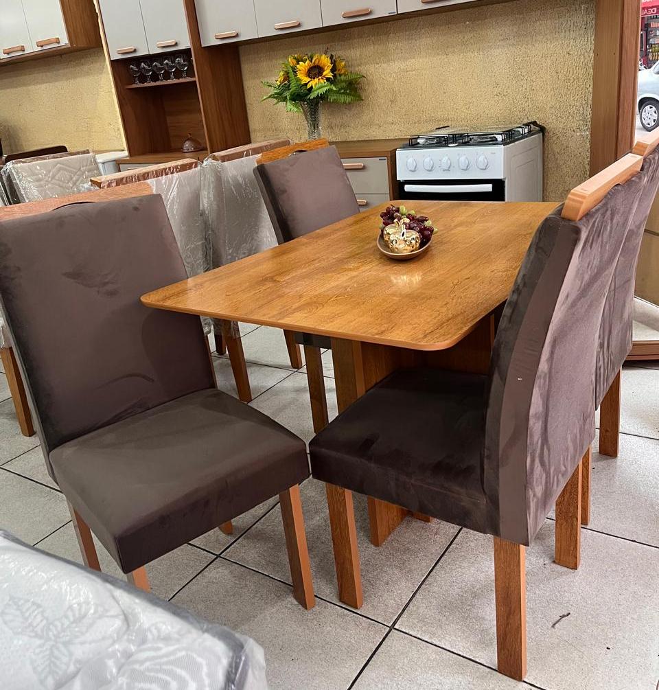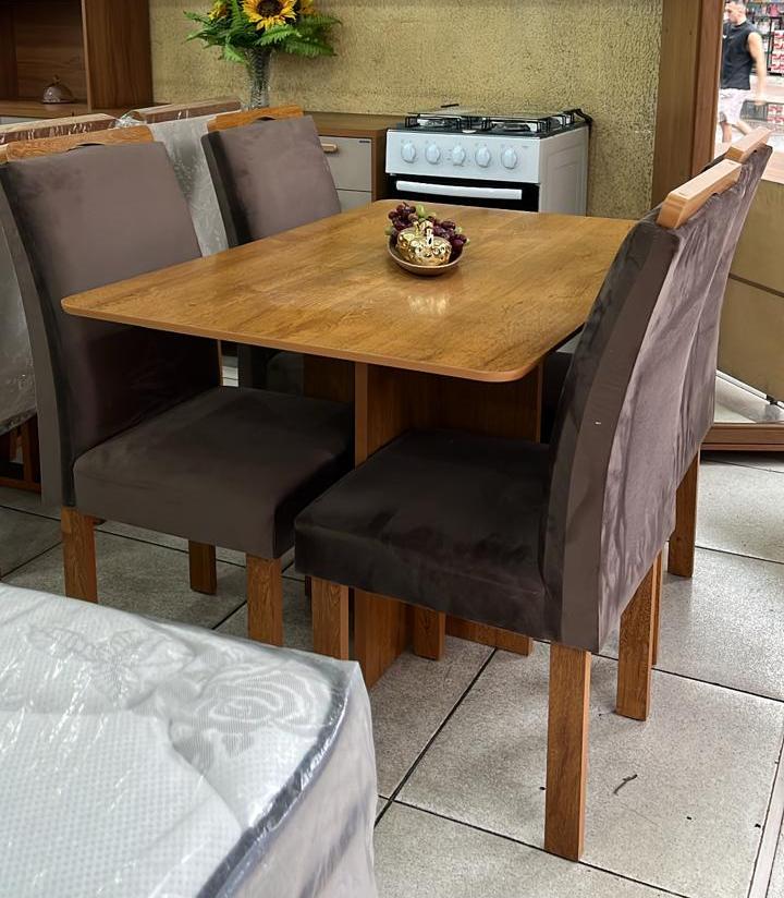 Compacto e funcional, se adapta muito bem a espaços menores, oferecendo um ambiente agradável para as refeições. As 4 cadeiras com acabamento marrom e assento confortável completam o conjunto com um toque de sofisticação. Uma opção moderna e encantadora para deixar sua sala de jantar ainda mais bonita e convidativa.