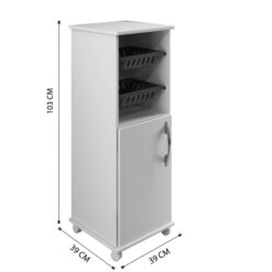 Quer praticidade para guardar suas frutas e legumes de forma higiênica? Que tal esta linda fruteira. Os cestos são em ABS (plástico) mais higiênicos e não machucam as frutas e legumes, possui tampo em MDF de 18mm muito mais resistente, tem também uma porta com puxador ergonômico e prateleira removível.