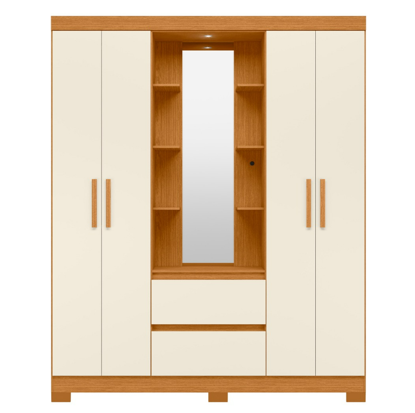 Guarda-roupa Casal 4 portas e 2 gavetas Com pés Olimpia – Cinamomo/Off White