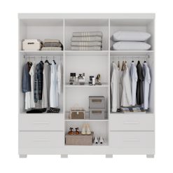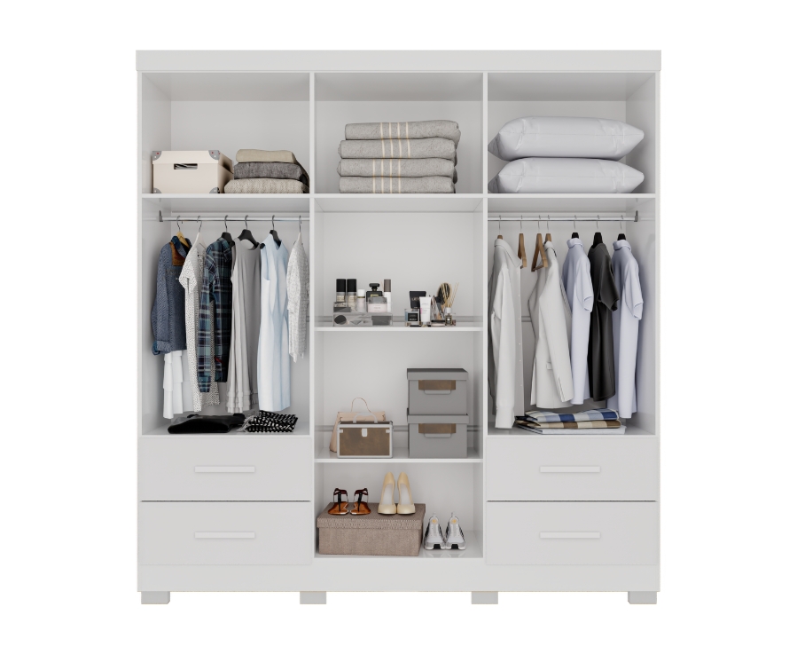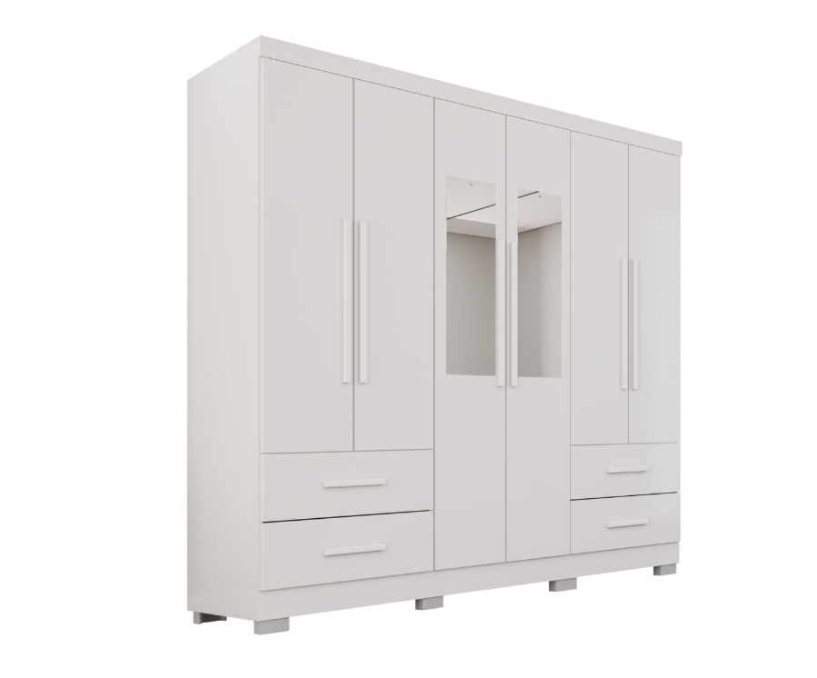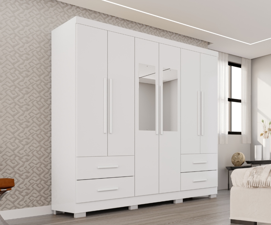 Guarda-roupa Casal 6 portas e 4 gavetas Com Espelho e Pés Texas Premium – Branco
