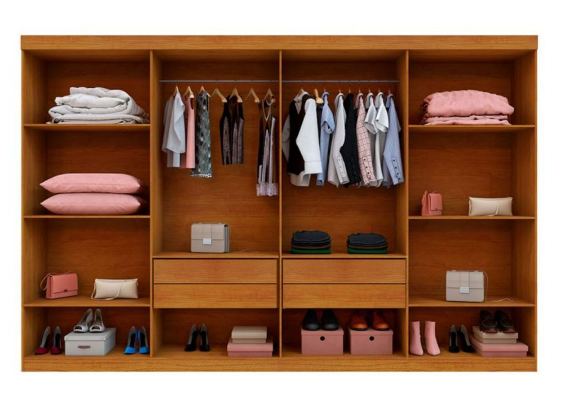 Com oito portas espaçosas e quatro gavetas, oferece amplo espaço de armazenamento de forma eficiente. Seu design sofisticado adiciona um toque de classe ao ambiente, enquanto as gavetas deslizam suavemente para fácil acesso aos itens pessoais. Os compartimentos internos do Guarda-roupa Casal 8 portas 4 gavetas Premium são estrategicamente organizados para tornar a arrumação mais eficiente.