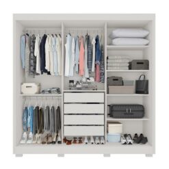 Guarda-Roupa Casal Atenas 3 Portas de Correr com pés 1 Espelho – Branco