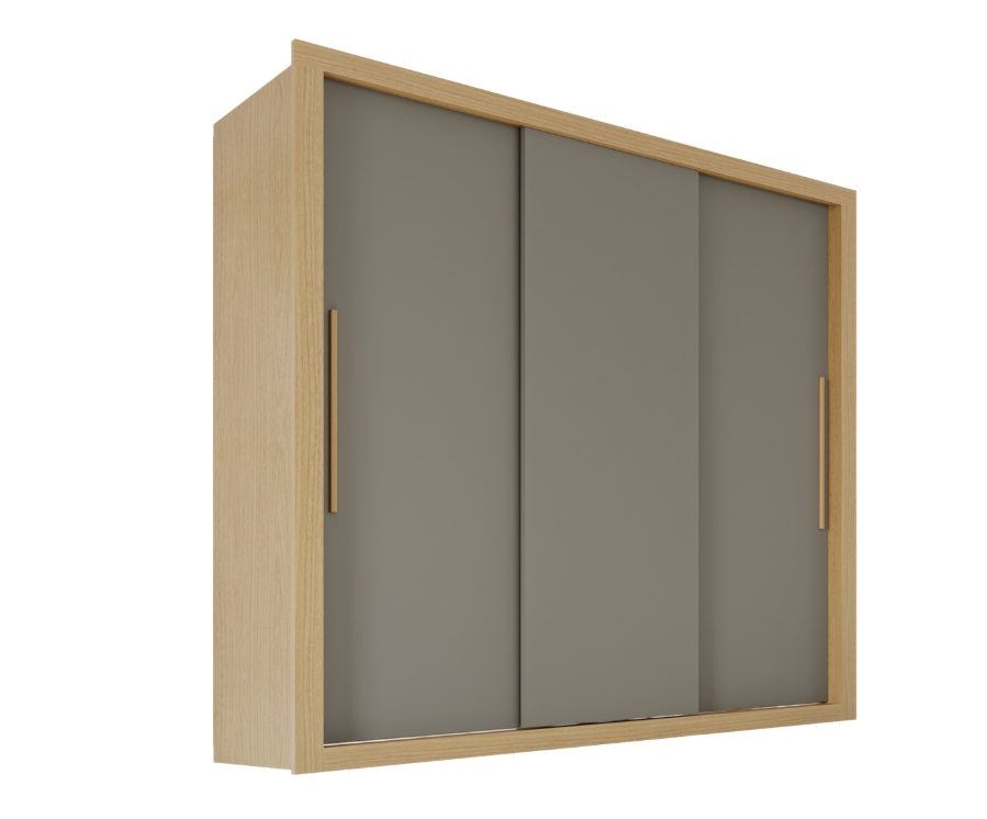 Guarda-Roupa Casal Sem Espelho e sem pés 3 Portas de Correr Linhares Flex – Jequitibá/Granizo – Sallêto