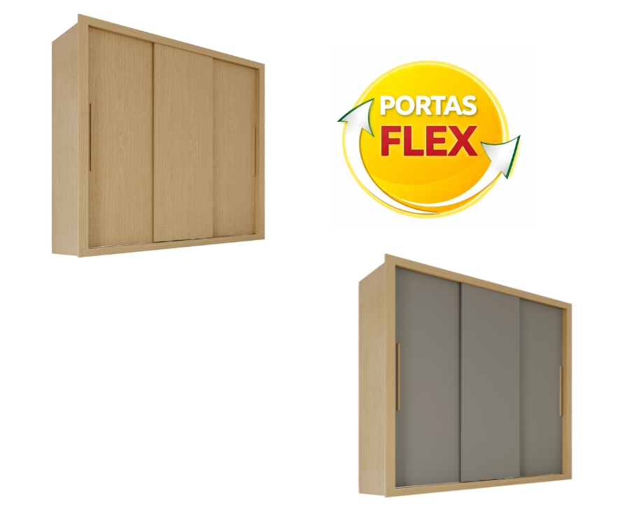 Guarda-Roupa Casal Sem Espelho e sem pés 3 Portas de Correr Linhares Flex – Jequitibá/Granizo