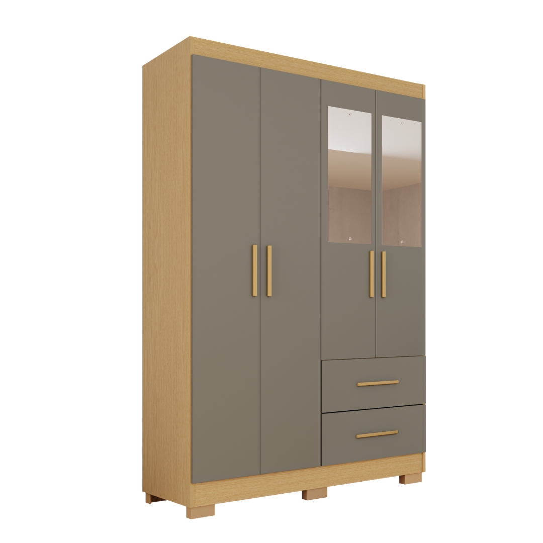 Guarda-roupa solteiro 4 portas e 2 gavetas Com Espelho Estrela Premium – Jequitibá/granizo