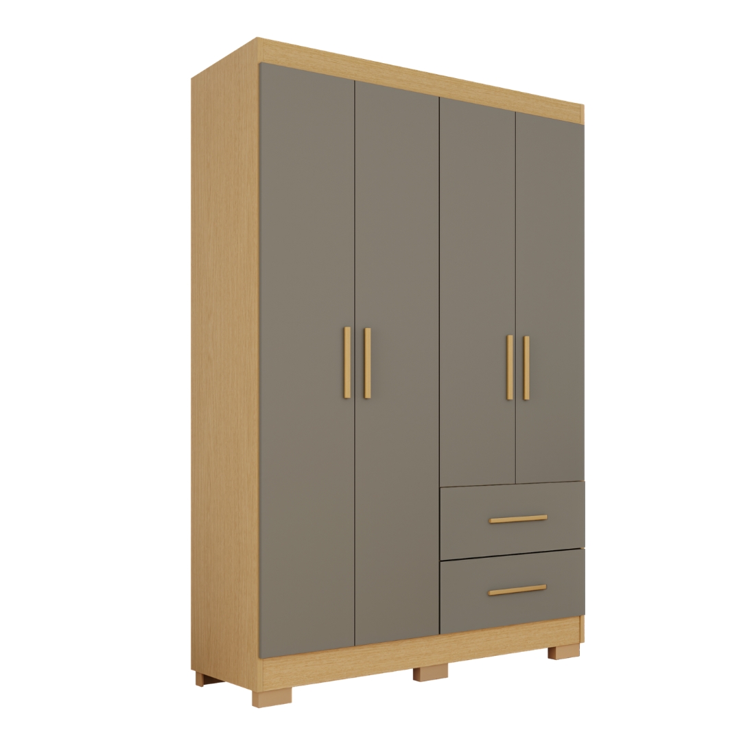 Guarda-roupa solteiro 4 portas e 2 gavetas Estrela Premium – Jequitibá/granizo