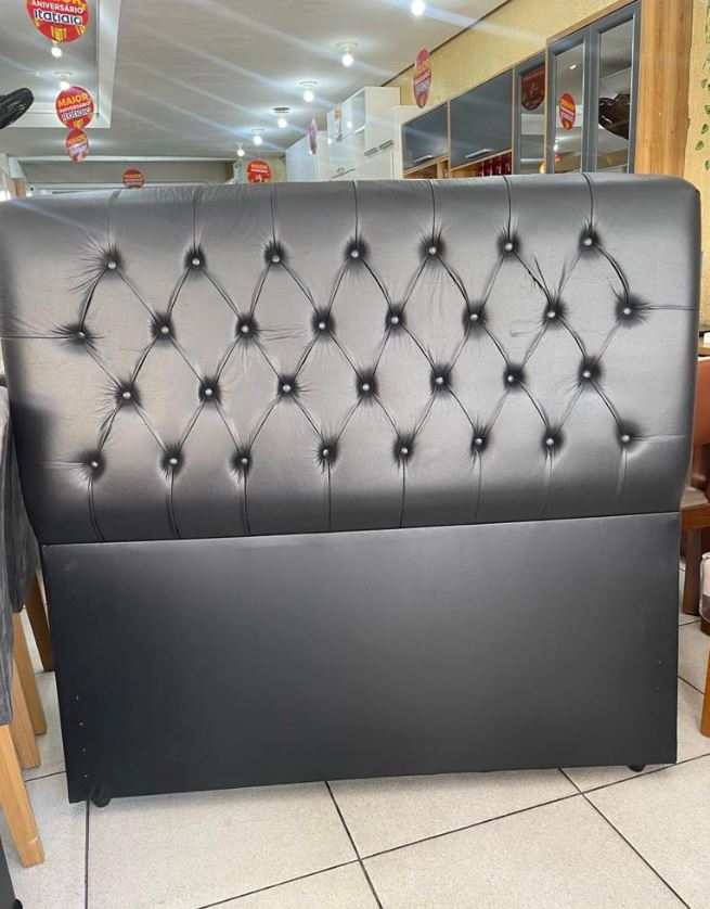 01 Cabeceira Casal para Cama Box Barcelona Classic 1,40 – Corino Preto – Bona