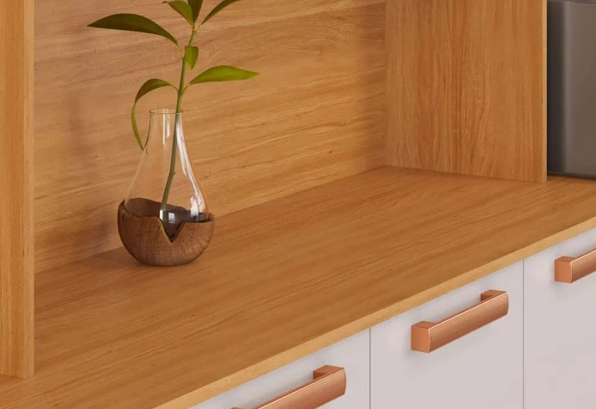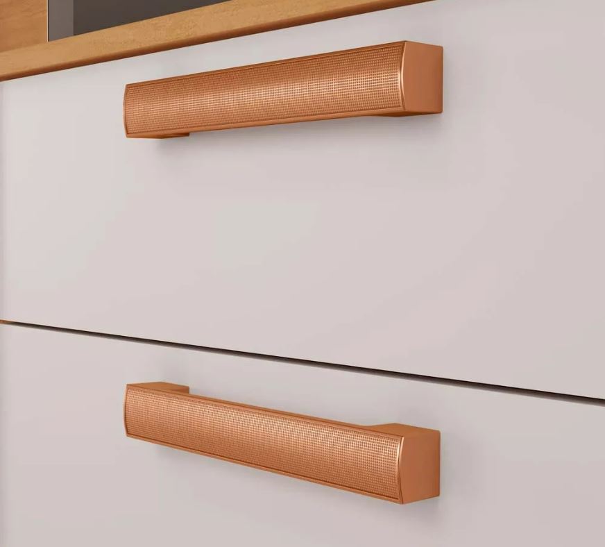 – Puxadores modernos exclusivos com acabamento metalizado na cor rose gold