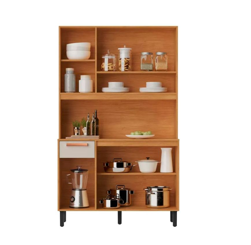 Kit Compacto Cozinha 6 Portas 1 Gaveta Nápoles 120cm – Cinamomo/Off White – Itatiaia