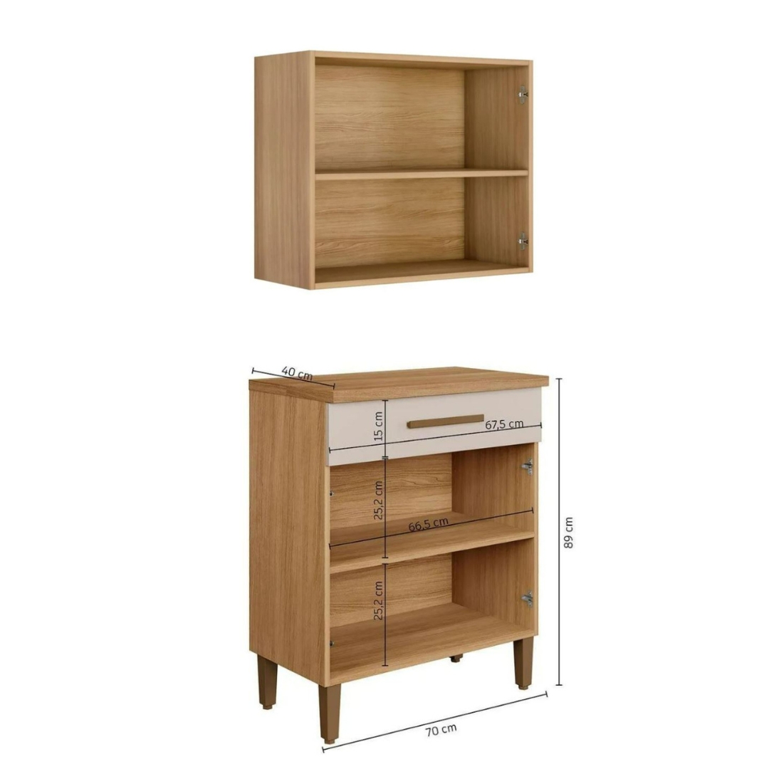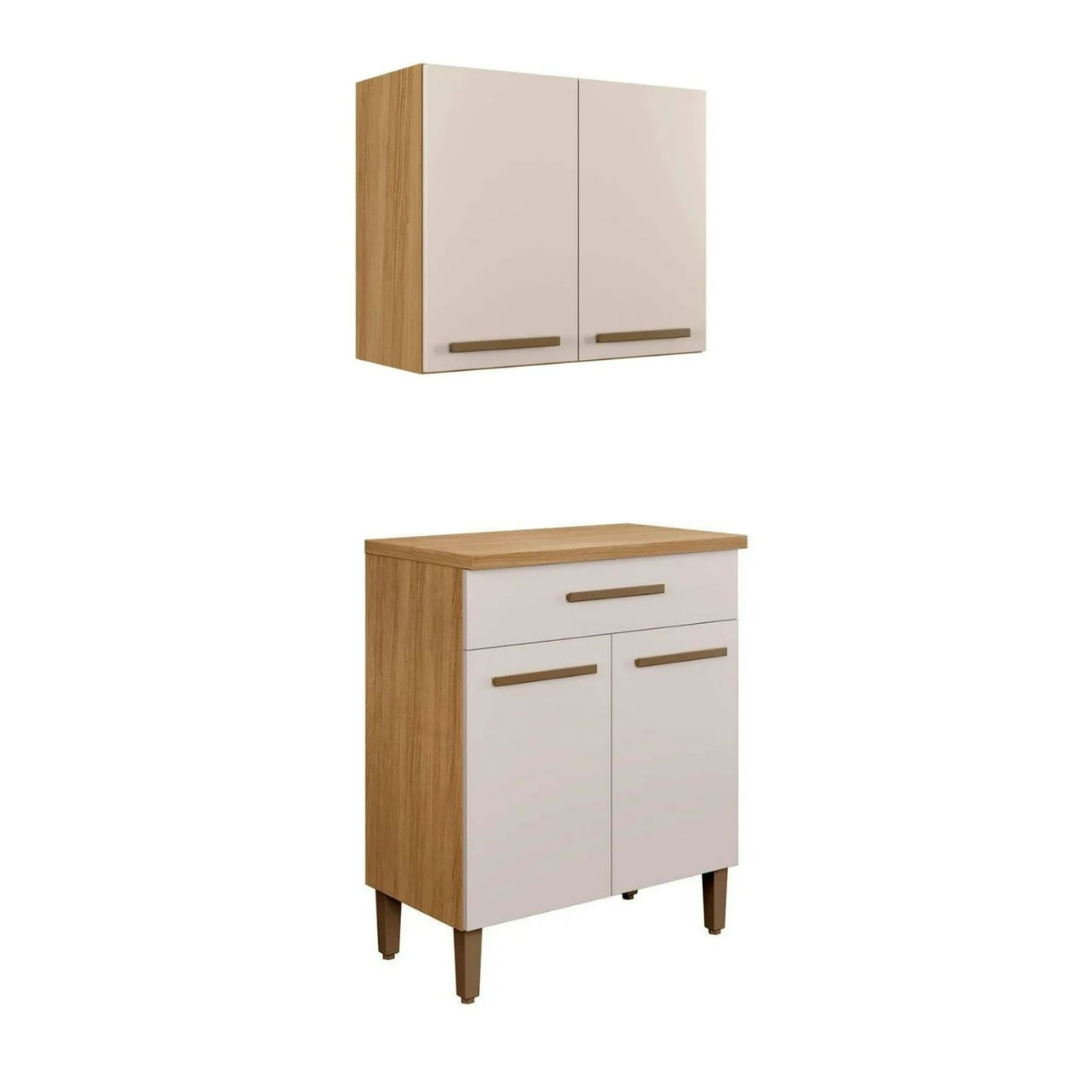 Kit Cozinha 2 peças Cristal Armário Aéreo 2 portas e Balcão – Cinamomo/Off White