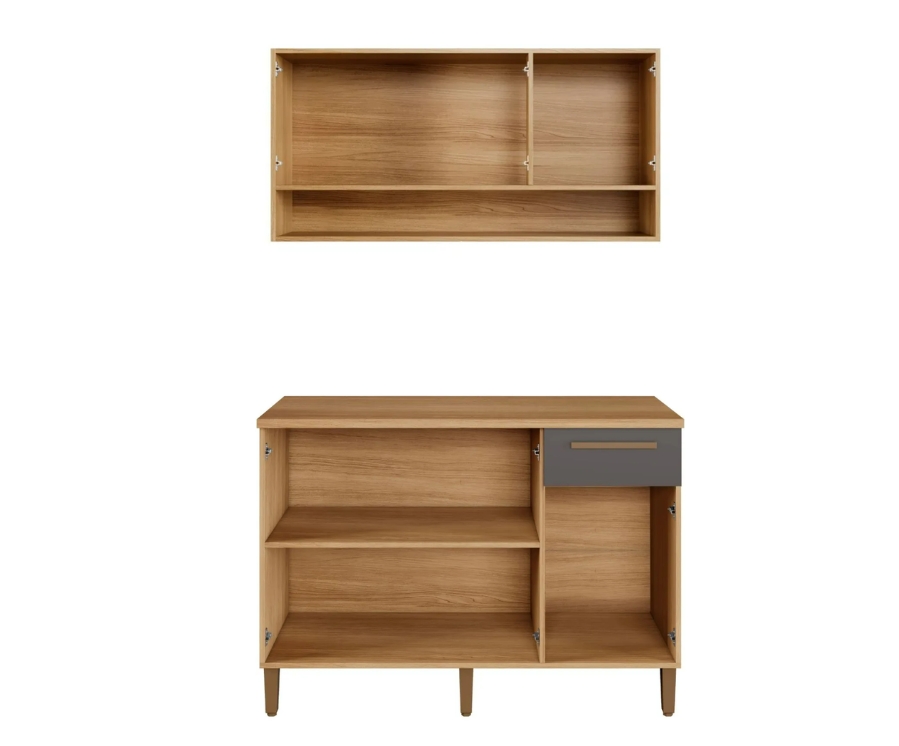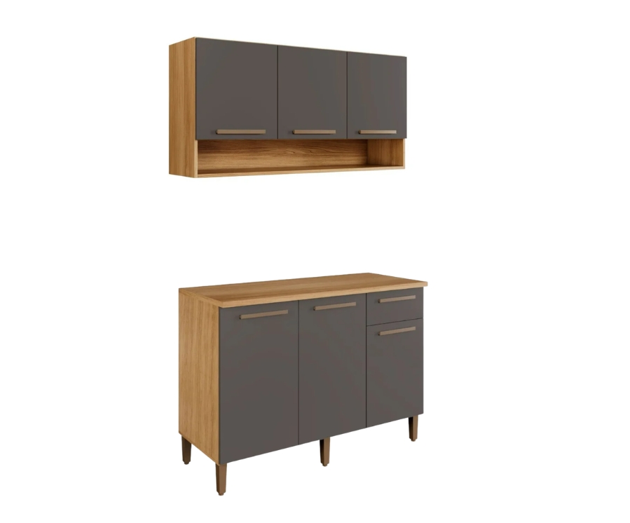 Kit Cozinha 2 peças New Master Armário Aéreo 3 portas e Balcão – Cinamomo/Grafite