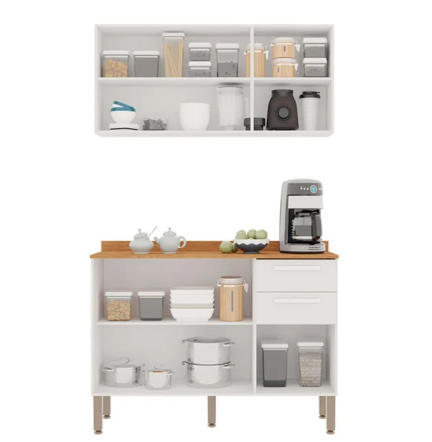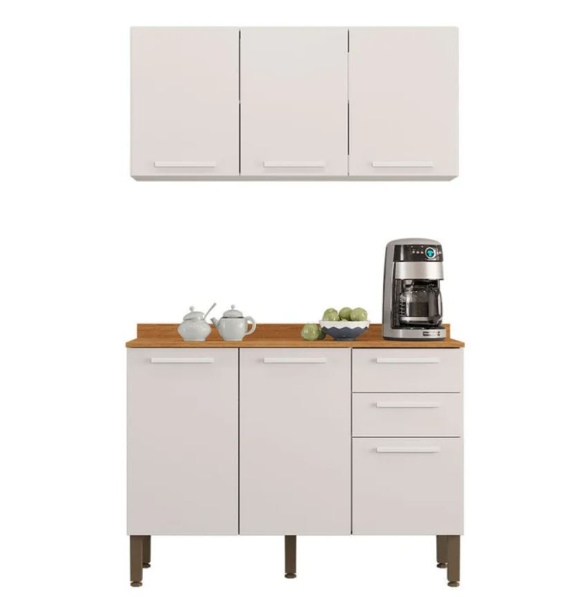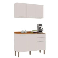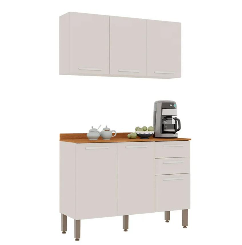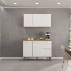 Kit Cozinha A 2 Peças New Valência Aéreo 3 portas e Balcão – Branco