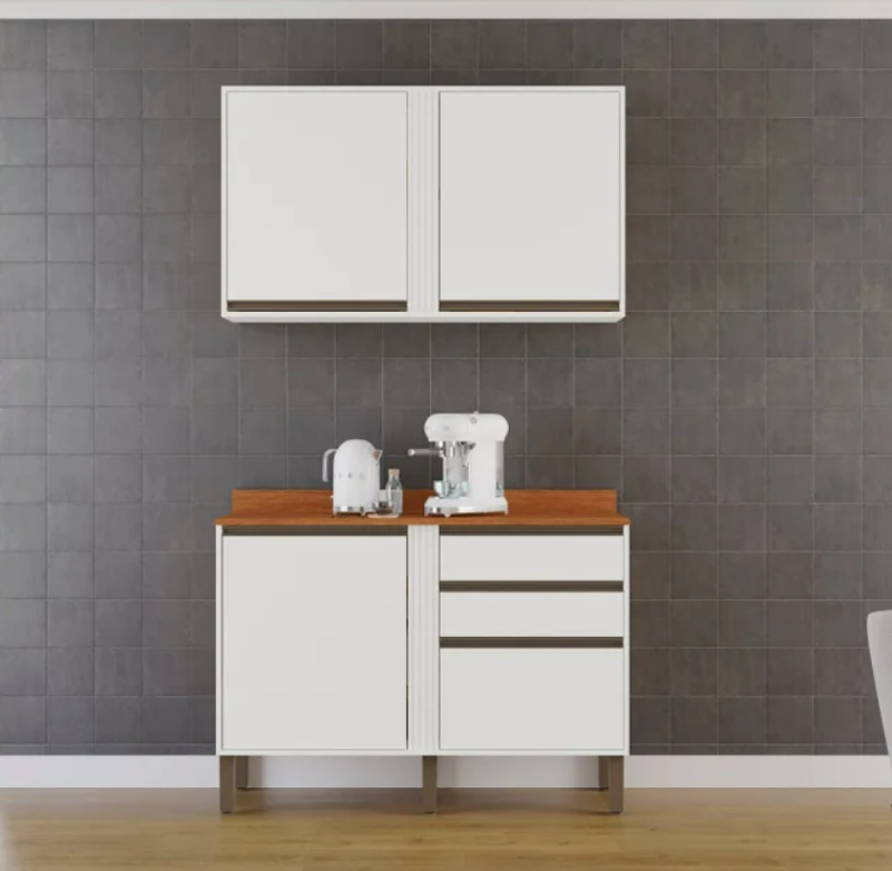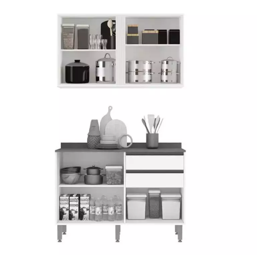 O Kit Cozinha Pérola é a combinação ideal para quem busca praticidade e um visual moderno no ambiente. Ele é composto por um armário aéreo de 2 portas e um balcão funcional, formando um conjunto que valoriza a cozinha e deixa tudo mais organizado no dia a dia.