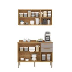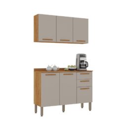 Kit Cozinha A 2 Peças New Valência Aéreo 3 portas e Balcão – Cinamomo/Off White