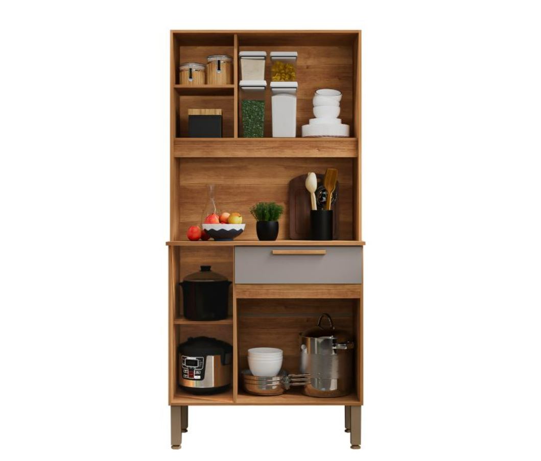 Este armário é composto por três portas e uma gaveta, oferecendo um ótimo espaço interno para armazenamento de utensílios, panelas, pratos e alimentos. As portas fornecem acesso fácil aos objetos guardados, enquanto uma gaveta é perfeita para guardar talheres e outros itens menores. Uma característica importante desse armário é que as gavetas são equipadas com corrediças telescópicas. Isso significa que elas deslizam suavemente e silenciosamente, facilitando o acesso aos objetos guardados e evitando o desgaste do móvel.