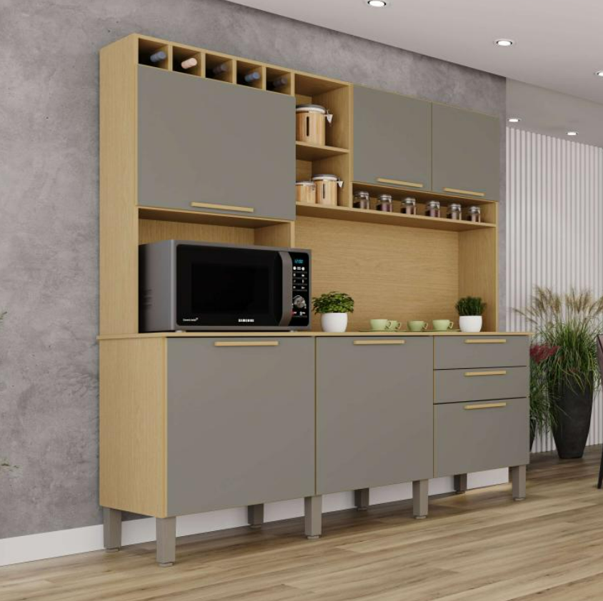 Armário Cozinha 6 Portas 2 Gavetas Kit New Topázio – Jequitibá/Granizo – Sallêto