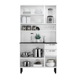 Kit Cozinha 4 Portas 1 Gaveta Pratika 80cm – Branco/Preto – Itatiaia