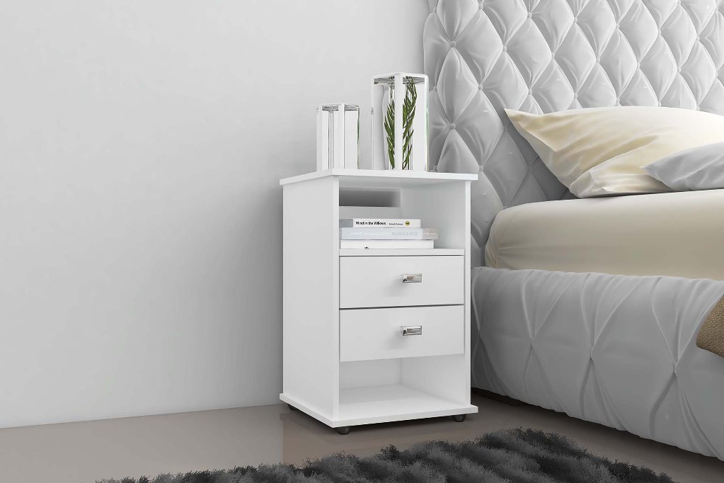 A Mesa de cabeceira Pilar é aquele móvel essencial para termos ao lado de nossa cama. Com estilo moderno possui duas gavetas para você guardar seu objetos diversos. Seus 2 nichos é o lugar ideal para você guardar seu livros e revistas ou aquela decoração decoração especial!