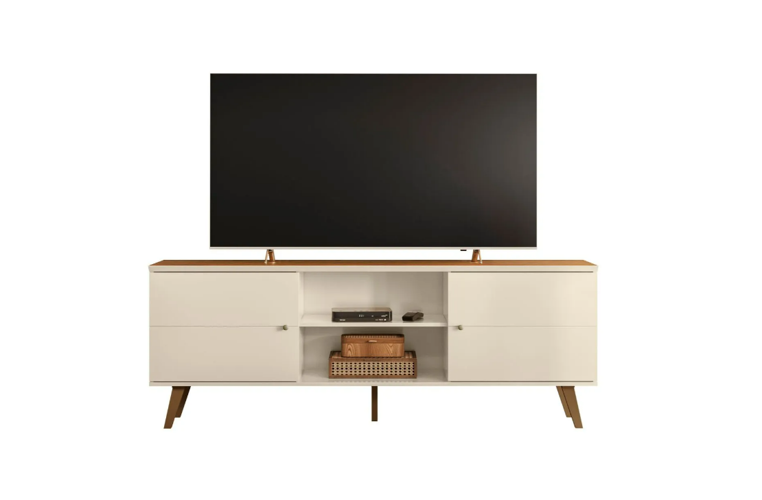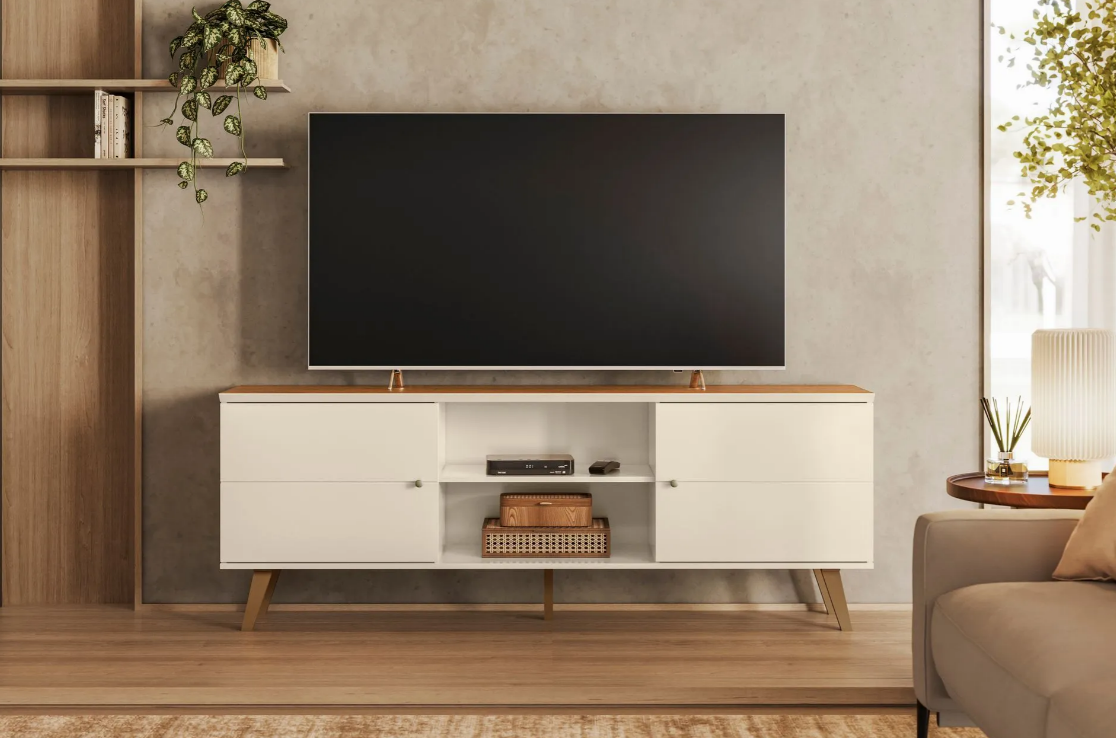 Rack Bancada para TV até 75 polegadas Aracaju – Off White/Canela