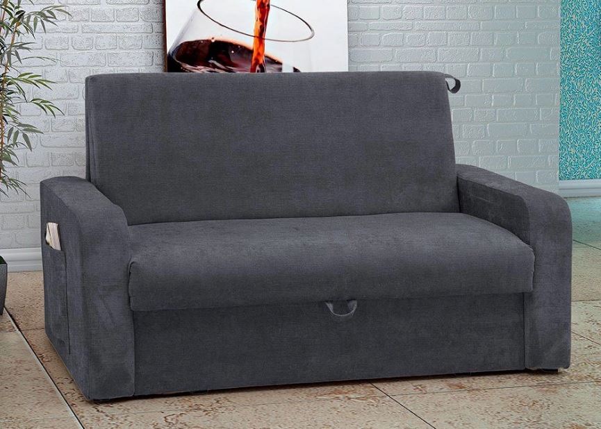 Sofá-Cama com baú 2 Lugares Daiane – Cinza Escuro – Matrix
