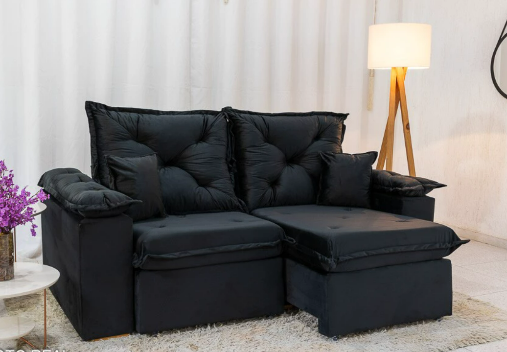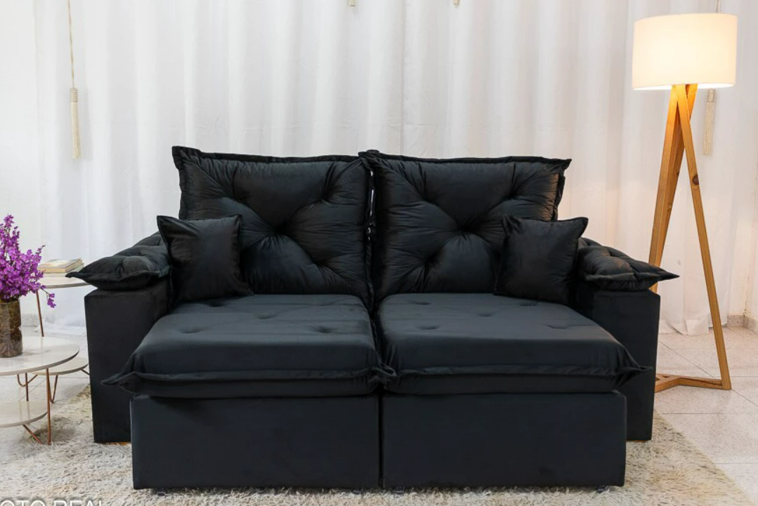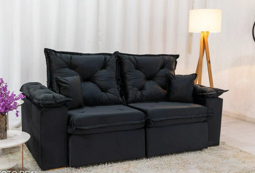 O estofamento é macio, com um visual acolhedor que valoriza o ambiente. As almofadas do encosto trazem aquele charme extra e tornam o sofá ainda mais convidativo. Além disso, suas dimensões de 2 metros garantem espaço para toda a família relaxar.